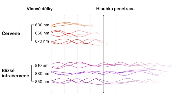 Vlnové dĺžky 630, 660, 670, 810, 830, 850 nm